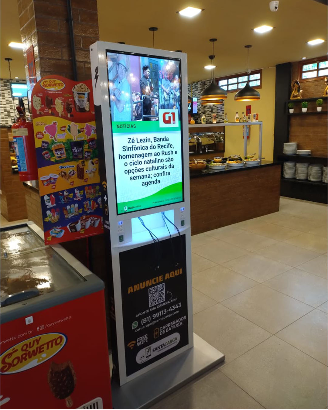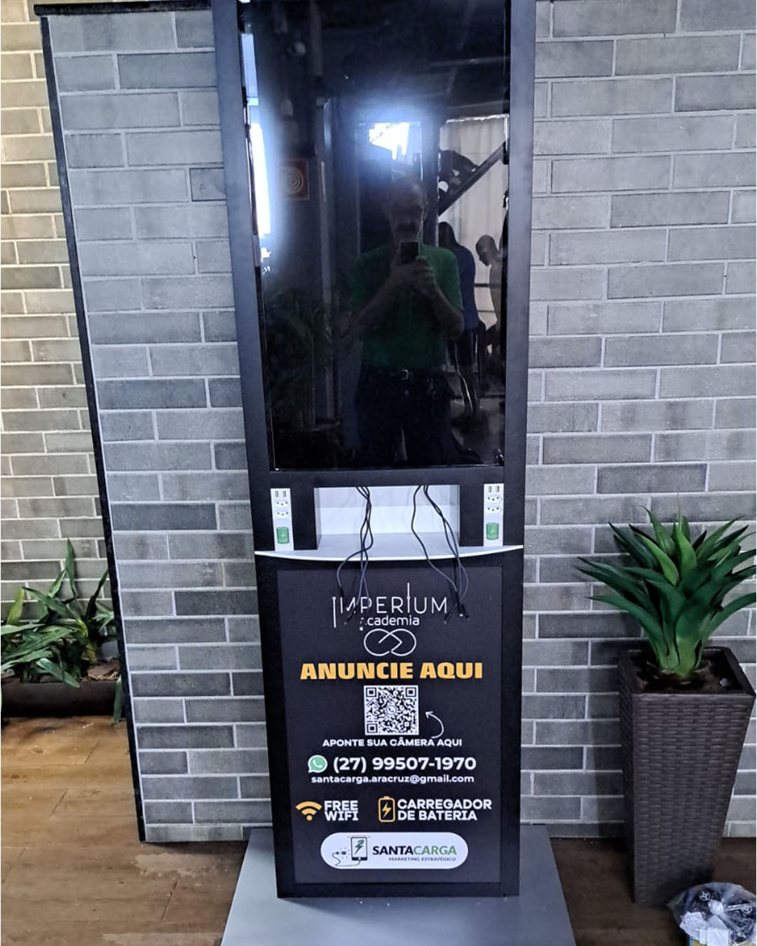 Com mais de 600 unidades espalhadas por todo o país, a Santa Carga já mudou diversas vidas através do empreendedorismo. Um modelo de negócio inovador de tecnologia e publicidade digital, que nasceu da necessidade de manter as pessoas conectadas. Empreenda junto com a gente, oferecendo espaço publicitário no seu Super Totem Carregador de Celular que também conta com a tecnologia do Wi-fi marketing.
